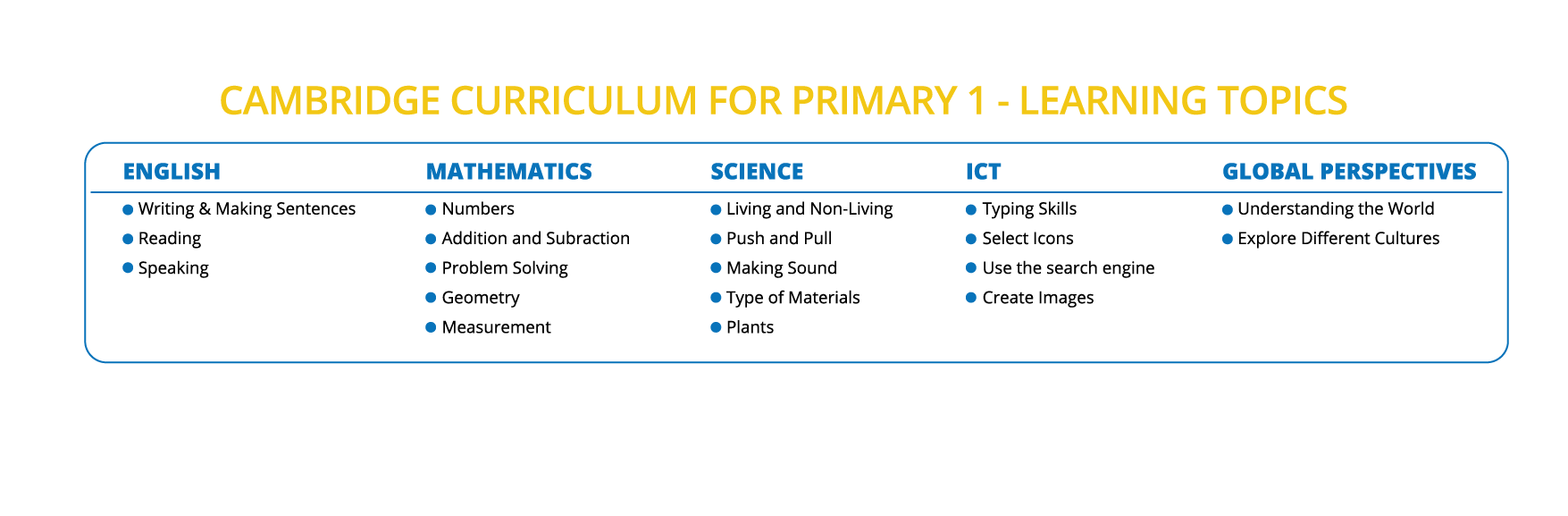 curriculum in Primary 1, enabling students to build upon their blocks of learning within a nurturing environment